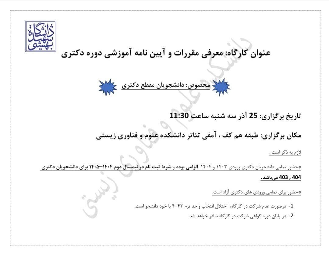 کارگاه معرفی مقررات و آئین نامه آموزشی دوره دکتری